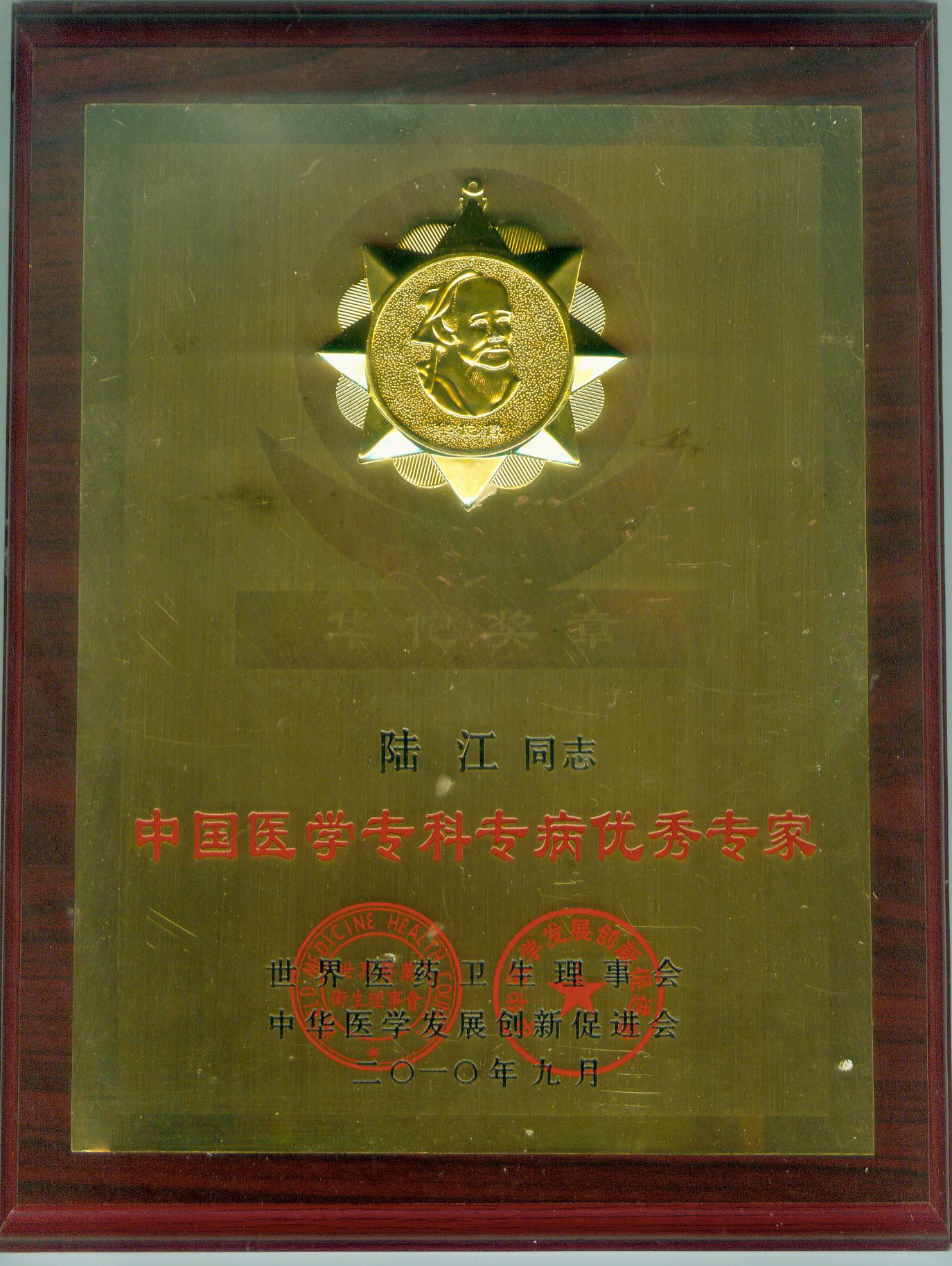 獲中國醫學專科專病優秀專家華佗獎章